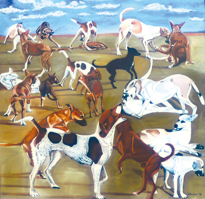 Playful Dogs, oil on canvas, 135 x 135 cm
